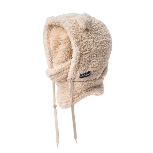 Cozy youth bear sherpa hood made for cold adventures. Wear it as a hooded balaclava or with the hood down as a neck tube.