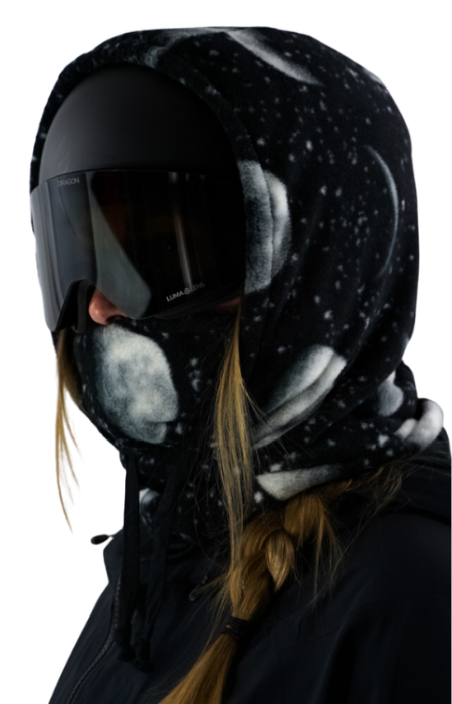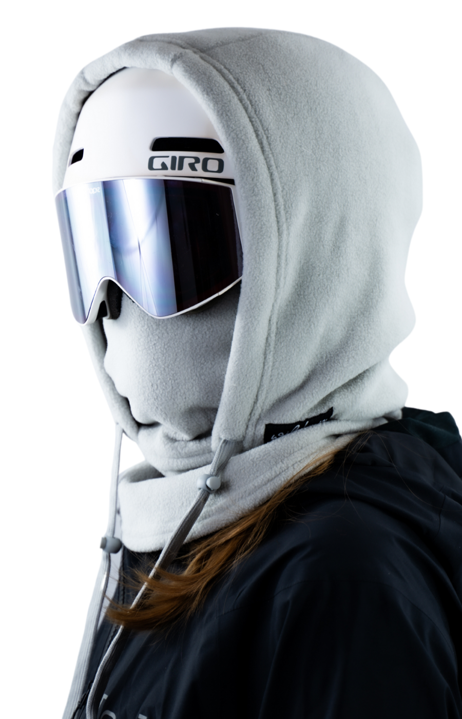 Hand-sewn fleece hood made for cold adventures. Wear it as a hooded balaclava or with the hood down as a neck tube.